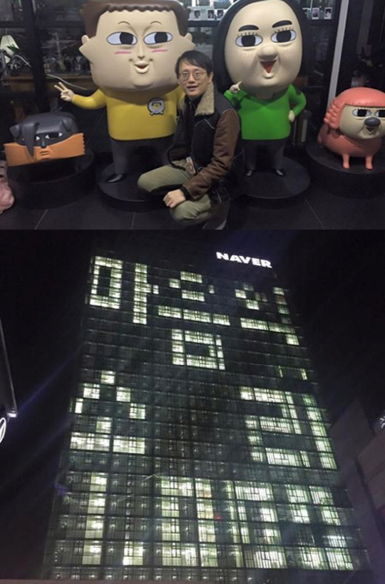만화가 조석의 '마음의 소리'가 1000화를 맞이한 가운데 네이버 측이 축하 메시지와 선물을 전달했다.