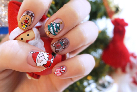 20대 초중반 여성이라면 크리스마스 캐릭터를 활용한 네일아트를 추천한다. 먼저 큐티클을 제거한 후, 투명한 베이스젤을 바르고 그 위에 알록달록 다양한 컬러를 활용해 산타클로스를 비롯해 루돌프, 크리스마스 트리, 인형 장식 등 귀여운 캐릭터를 그려 넣어주면 귀엽고 앙증맞은 네일아트를 연출할 수 있다.