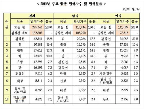 암 발생률은 남성이 여성보다 높았지만 증가세는 여성이 더 컸다.