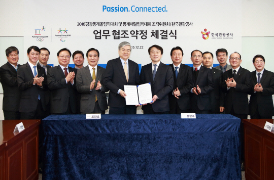 한국관광공사(사장 정창수)는 2018평창동계올림픽대회 및 장애인동계올림픽대회 조직위원회(위원장 조양호)와 22일 평창동계올림픽대회 성공개최를 위한 업무협약을 체결했다. 공사와 조직위는 이번 협약을 계기로 본격적으로 평창올림픽대회 국내외 홍보를 추진하고, 관광 부문 준비에 박차를 가한다는 계획이다.