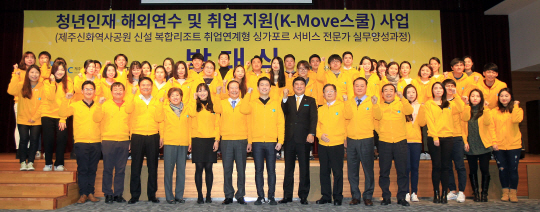 제주국제자유도시개발센터가 추진 중인 '제주지역 청년인재 양성사업'의 첫 결과물이 나왔다. 지난 17일 오전 JDC 본사에서 '제주신화역사공원 신설 복합리조트 취업연계형 싱가포르 서비스 전문가 실무 양성과정'의 발대식이 열렸다.