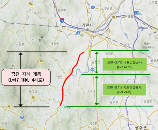 김천 지례면~양천 국도 3호선, 4차로로 확장 개통