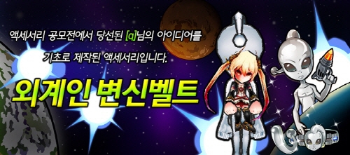 액션 타격게임 '겟앰프드'가 30일 유저들을 위한 신규 액세서리 아이템 출시 및 2015년 마지막 송구영신 이벤트를 진행한다고 밝혔다. 겟앰프드를 서비스하는 ㈜JUNEiNTER(대표 한성택)에 따르면 외계인 변신 벨트는 공식 홈페이지에서 유저들을 대상으로 진행됐던 액세서리 공모전을 통해 당선되어 개발된 아이템이다.