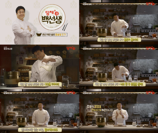 주방을 배경으로 한 영상 속에서 백종원은 '딤채쿡'으로 김치밥을 짓는 레시피와 삼계탕을 만드는 방법을 설명하고, 묵은 쌀을 햅쌀밥처럼 먹는 방법과 밥의 영양분을 높여 건강한 밥을 만드는 팁을 공개한다. 특히 구수한 충청도 사투리를 구사하는 백종원 특유의 말투 덕분에 편안한 매력과 함께 보는 이들에게 친근한 느낌을 선사한다.