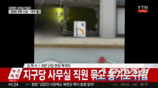 이 괴한은 "기자를 불러달라"며 문재인 대표의 사퇴와 구속을 요구한 것으로 알려졌다. <스포츠조선닷컴>