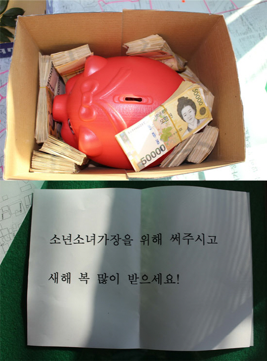 '16년째 기부' 얼굴 없는 천사, 올해도 어김없이…현금 뭉치+돼지저금통