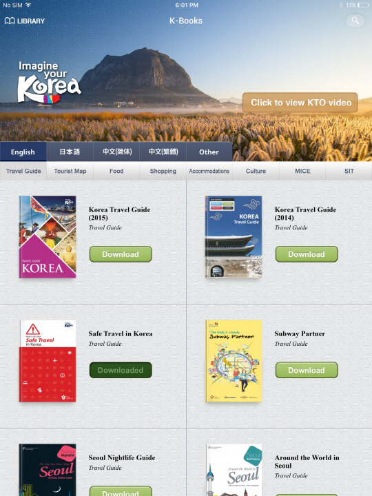 한국관광공사(사장 정창수)는 모바일 기반의 한국관광 외국어 홍보물 앱(K-Books)을 새롭게 개편, 오픈했다. 'K-Books'앱은 최신 ICT 기술을 응용하여 한국관광 외국어 홍보물을 태블릿 PC 및 스마트폰에서 E-Book 형태로 제공하는 무료 앱이다.