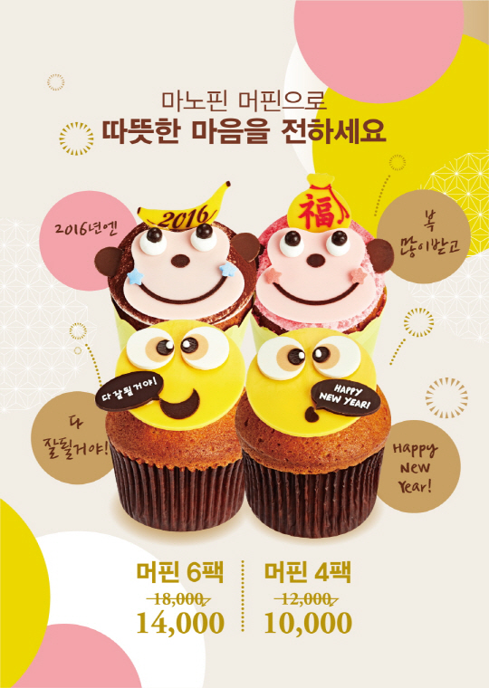 글로벌 외식문화기업 MPK그룹이 운영하는 마노핀이 2016년 새해를 맞아 캐릭터 머핀 4종을 출시했다.