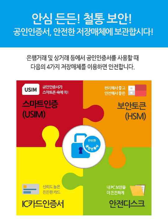 한편 '공인인증서 안전 실천 캠페인'은 공인인증서 파일 유출로 인한 피해를 예방하고 공인인증서 안전이용 대국민 인식을 제고하기 위한 것으로 스마트인증, 보안토큰, IC 카드인증서, 안전디스크 등 안전한 매체 저장을 권유하는 캠페인이다.