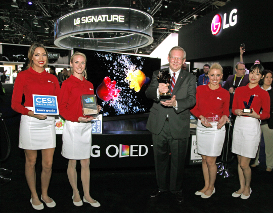 10일 LG전자에 따르면 LG 시그니처 올레드 TV(모델명 G6)는 CES의 공식 어워드 파트너인 '엔가젯(Engadget)'으로부터 TV 부문 '최고 제품상'을 받았다. LG전자 올레드 TV는 2년 연속으로 해당 부문에서 '최고 제품상'을 받았다. 엔가젯은 LG 시그니처 올레드 TV의 뛰어난 HDR 화질과 세련된 디자인을 높이 평가했다. 미국 최대 일간지 'USA 투데이'의 리뷰 전문 매체 '리뷰드닷컴'도 LG 시그니처 올레드 TV를 에디터스 초이스에 선정했다.