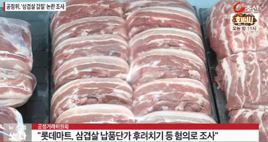 롯데마트를 공정위에 신고한 납품업체 측은 "롯데마트가 '삼겹살데이' 등 할인행사에 맞춰 정상가에서 최대 50% 깎인 가격에 납품을 받아 100억원의 손해를 봤다"고 주장했다.