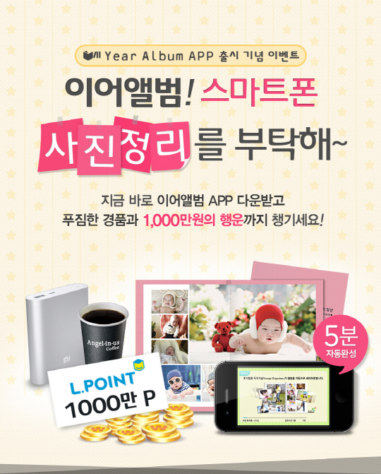 한국후지필름에 따르면 이어앨범은 1년 동안 찍은 사진을 5분만에 한 권의 앨범으로 제작할 수 있는 후지필름의 독자적인 첨단 사진분석기술이 탑재된 고화질 프리미엄 포토북 서비스다.