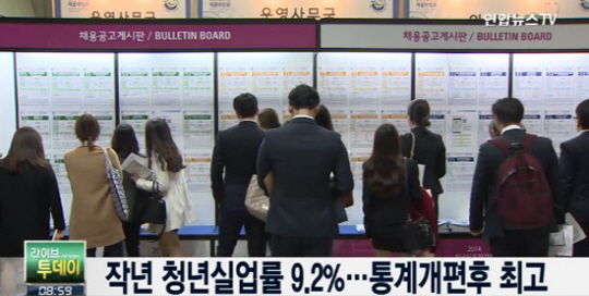 작년 청년실업률 9.2%…1999년 통계 기준 변경 후 최고치
