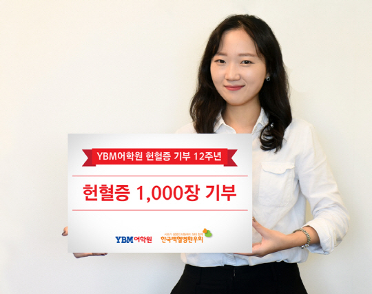 YBM어학원은 지난해 연말에 실시한 '제12회 사랑나누기 헌혈캠페인'을 통해 모은 헌혈증 1000장을 한국백혈병환우회에 전달했다고 19일 밝혔다.