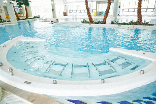 대표 시설 중 하나인 실내 바데 풀은 다양한 압력의 물줄기와 공기방울 등 수압으로 물리치료 효과를 볼 수 있도록 설계됐다. 150m 길이의 실외 유수풀은 실내와 바로 연결되어 있다. 또 매일 남탕과 여탕의 위치를 바꾸는 남녀 온천탕과 노천온천, 테라피 마사지 시설 등을 갖추고 있다. 매주 금, 토, 일요일 나이트 스파 (온천 대욕장 06:00~23:00 / 스파 09:00~22:00)도 운영한다.