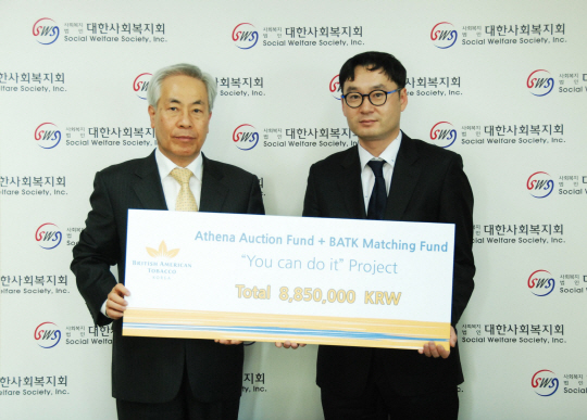 '아테나'는 지난 달 BAT 코리아 임원들의 자발적인 참여로 자선경매 물품을 조성, BAT 코리아 임직원을 대상으로 자선경매를 진행해 총 440여만원의 경매수익금을 모금했다. 여기에 BAT 코리아가 매칭펀드로 추가 금액을 조성, 총 885만원의 금액을 대한사회복지회에 전달했다.