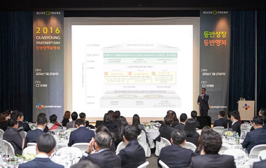 CJ올리브네트웍스가 운영하고 있는 국내 대표 헬스&뷰티 스토어 올리브영이 지난 21일 CJ인재원 그랜드홀에서 협력사와의 동반성장 세미나인 '2016 올리브영 파트너스 데이(Partner's day)를 개최했다.