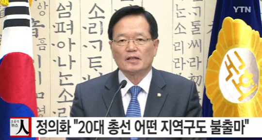 정 의장은 25일 국회에서 긴급 기자회견을 열고 자신의 지역구인 부산은 물론 동서 화합 차원에서 권유가 있었던 호남 등 다른 지역 출마도 안 할 것이라며 일각에서 제기된 국민의당 합류설을 일축했다.