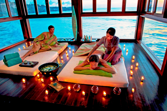 눈 밑에 부드럽게 다가오는 파도소리를 느끼며 프라이빗 빌라로 불어오는 바다 미풍을 느낄 수 있는 게 특징이다. 스파 온더 락스에서는 하루 3커플만 서비스를 제공한다.