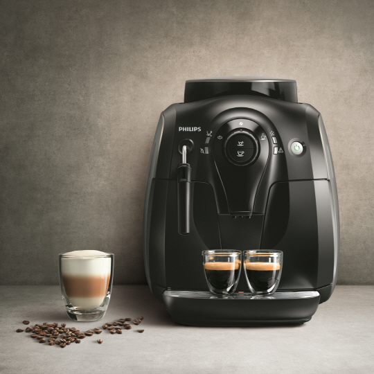 '필립스 홈에스프레소 2000'은 특허 받은 세라믹 그라인더를 탑재해 신선한 원두를 직접 바로 갈아 마실 수 있기 때문에 집에서도 풍부한 맛과 향미를 지닌 고급커피를 손쉽게 즐길 수 있는 것이 특징이다. 자신의 입맛에 맞는 에스프레소를 자동으로 추출할 수 있는 스마트 메모 기능이 있어 버튼 하나로 자신의 스타일에 맞춘 커피를 간편하게 만들 수 있다.