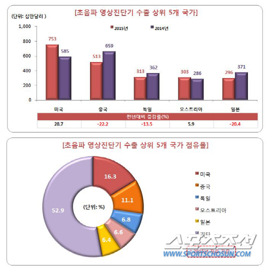삼성메디슨 등 국내 의료기기 업체들의 지난해 '초음파 영상진단기' 수출 통관실적이 5600억원에 이르는 것으로 나타났다.