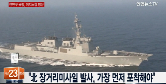 6일 한 장관은 이 자리에서 "지난 3차례 북한 장거리 미사일 발사 시 우리 이지스함이 최초로 탐지해 그 능력과 태세를 입증한 바 있다"며 장병들의 정신 무장과 완벽한 임무 수행을 주문했다고 국방부가 밝혔다.