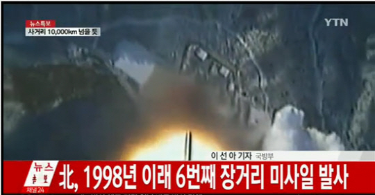 북한이 1998년 이후 6번 째 장거리 미사일을 발사했다.