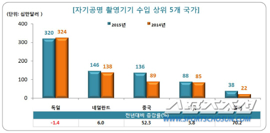 분석에 따르면 지난해 MRI 수입 통관실적은 2014년 6582만5000달러(약 788억원) 대비 10.5% 증가한 7276만달러(약 871억원)로 집계됐다. 반면, 수출 통관실적은 800만7000달러(약 96억원)에 그쳤다. 수출입 격차가 9.1배에 달한다.