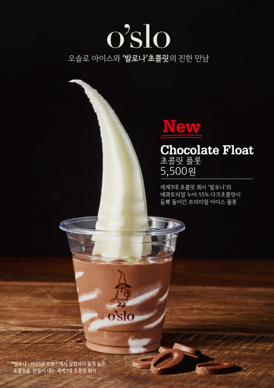 신세계푸드가 직영 운영하는 프리미엄 아이스 브랜드 오슬로가 밸런타인데이를 맞아 세계 3대 초콜릿 브랜드 발로나의 에콰토리얼 누아 다크 초콜릿을 사용한 '초콜릿 플롯(Chocolate Float)'을 신규 출시한다고 12일 밝혔다.