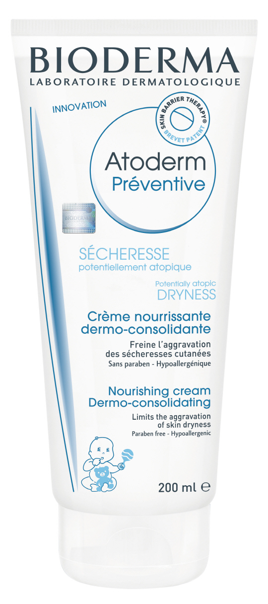 바이오더마 아토덤 프리벤티브(200ml, 36,000원)는 아기의 출생 직후부터 바로 사용할 수 있는 신생아 전용 보습 크림이다. 바이오더마의 독자 기술인 '스킨 배리어 테라피?'가 피부 장벽을 지속적으로 강화시켜 아기가 성장하면서 후천적으로 나타날 수 있는 피부 건조증, 과민성 피부 등의 피부 문제 발생 가능성을 낮춰준다. 또한 글리세린, 바세린 복합체가 보습 효과를 제공해 피부 속부터 건강한 피부로 가꿔준다. 산뜻하고 파우더리한 향기와 함께 피부에 촉촉하게 녹아드는 부드러운 텍스처로 많은 엄마들에게 사랑받고 있는 제품이다.