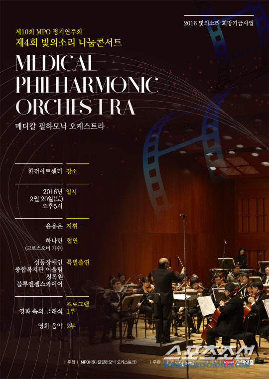 MPO는 오는 20일 오후 5시 서울 양재동 한전아트센터에서 한미약품 후원으로 '제4회 빛의소리 나눔콘서트'를 무료 초청 공연으로 진행한다고 밝혔다.