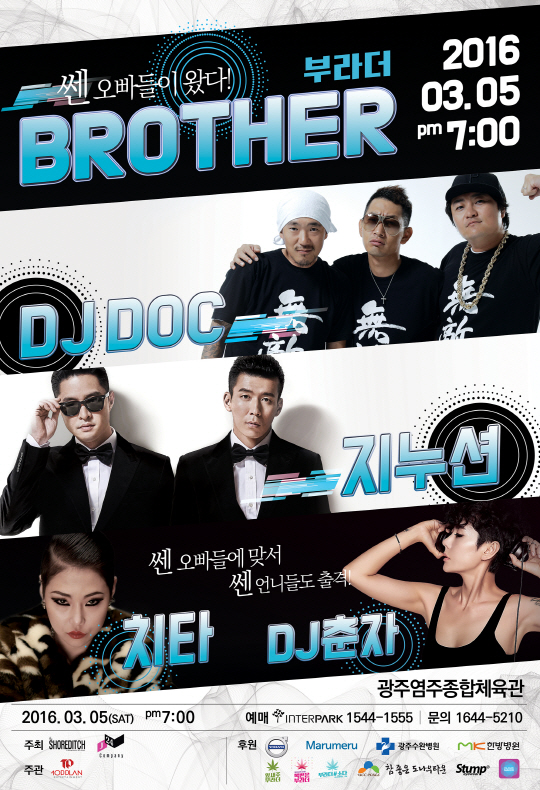 공연 기획사 쇼디치커뮤니케이션은 오는 3월05일 오후 7시 전남 광주 염주체육관에서 '2016 쎈 오빠 언니 들이 왔다! BROTHER 콘서트! 를 개최하고 광주 힙합 음악팬들의 폭팔적인 관심을 받고 있다.