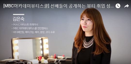 MBC아카데미뷰티스쿨 김채호 대표는 "뷰티 전문가로 활동하고 있는 선배 아티스트가 자신의 취업 노하우를 직접 공개한 '뷰티 취업 성공의 비결' 동영상이 예비 뷰티 아티스트들에게 큰 호응을 얻고 있다"며 "현재 공개된 메이크업 분야 취업 노하우뿐 아니라 네일아트, 헤어, 에스테틱 분야의 취업 비결도 곧 오픈할 예정이니, 뷰티 아티스트를 꿈꾸고 있는 분들의 많은 관심을 바란다"고 말했다.