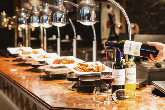 그랜드 힐튼 서울의 뷔페 레스토랑은 매주 화요일 저녁, 기존 가격에 와인을 무제한 제공하는 '화요일에 만나는 무제한 와인 디너 뷔페'를 선보인다.