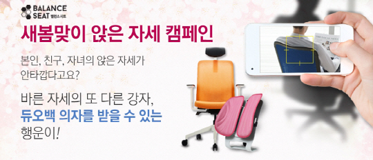 자동차용품 판매기업 불스원 헬스케어 사업부의 프리미엄 기능성 방석인 밸런스시트는 오는 3월 13일까지 홈페이지(www.balanceseat.co.kr)에서 신학기와 새봄맞이 '앉은자세 인증샷' 올리기 이벤트를 진행한다.