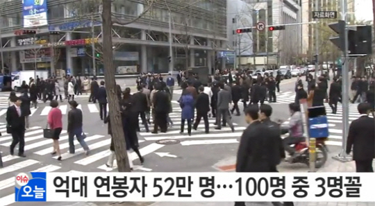 전국 근로자 가운데 억대 연봉을 받는 사람은 100명 중 3명꼴로 나타났다.