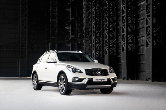 뉴 QX50은 스포츠 쿠페를 연상시키듯 날렵하게 디자인됐다. 특히 전면부 디자인은 공격적이면서 세련된 이미지를 강조했다. 최신 인피니티 차량들에서 볼 수 있었던 대표 디자인 DNA인 더블 아치 그릴은 한층 입체적으로 진화했다. 여기에 현대적 느낌의 L자형 헤드램프 등을 통해 특유의 볼륨감을 살려 개성을 더욱 높였다.