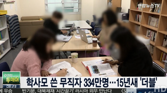 대학을 졸업하고도 경제활동을 하지 않는 인구는 매년 꾸준히 증가해 2004년(207만5000명) 200만명 선을 돌파한 뒤 2013년(307만8천명)에는 300만명을 찍었다. 이후에도 증가세는 계속돼 작년에는 2009년(6.6%) 이후 최대 증가 폭을 보였다.