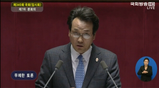 [스포츠조선닷컴 김영록 기자] 31번째 필리버스터를 진행하고 있는 안민석 의원이 스스로를 행운아라고 자칭했다.