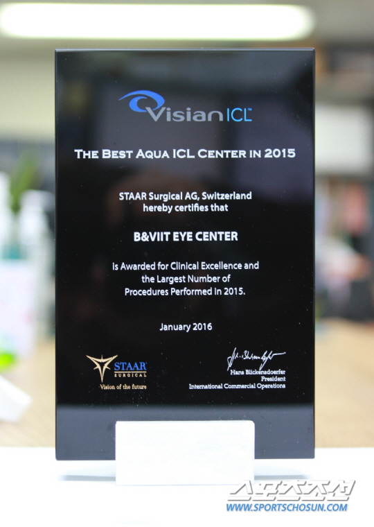 ◇비앤빛 강남밝은세상안과 'THE BEST AQUA ICL CENTER IN 2015' 수상 상패