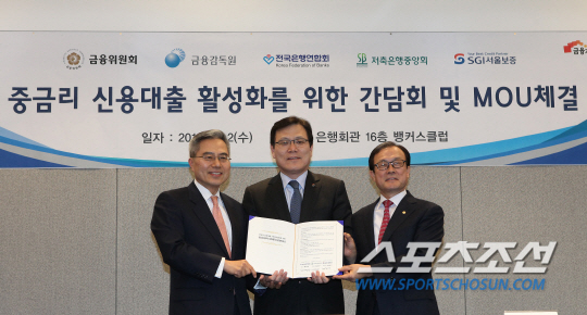 전국은행연합회(회장 하영구), 상호저축은행중앙회(회장 이순우), SGI서울보증(사장 최종구)은 2일 중금리 신용대출 활성화를 위한 양해각서를 체결했다고 밝혔다.