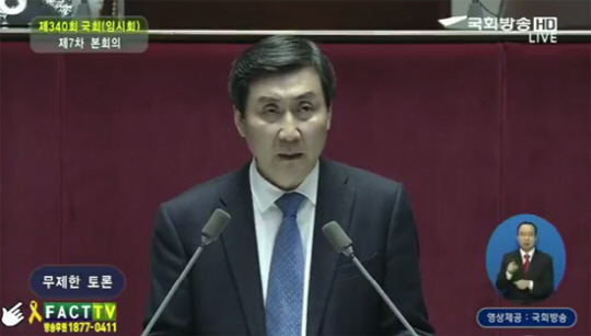 더불어민주당 이종걸 원내대표가 필리버스터(무제한 토론) 마지막 주자로 국회 본회의장 연단에 올랐다.