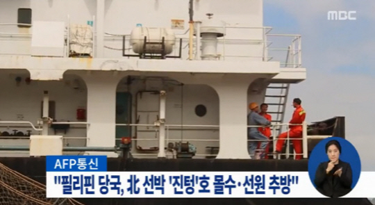 필리핀 당국이 유엔 안전보장이사회의 북한 제재 결의에 따라 북한 선박 '진텅'호를 몰수하고, 선원들은 추방키로 했다고 AFP통신 등이 보도했다.