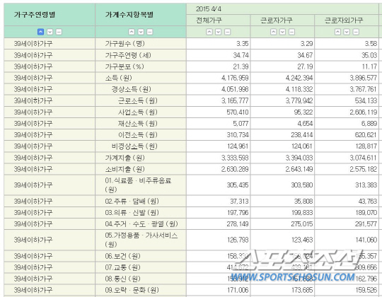 20∼30대 근로자 가구의 지난해 근로소득이 0.8% 줄어든 것이 사업소득·재산소득 등을 포함한 전체소득 증가율에 영향을 미쳐 마이너스를 기록한 것으로 나타났다.