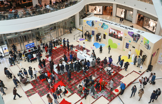 삼성전자가 13일 갤럭시 S7 엣지 와 갤럭시 S7의 국내 출시를 맞아 20일까지 서울 영등포 타임스퀘어 아트리움에서