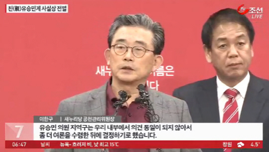 조해진(경남 밀양·의령·함안·창녕), 김희국(대구 중남구), 이종훈(경기 성남분당갑) 의원 등 친유승민계로 분류되는 의원들은 이날 공천에서 대거 배제됐다.