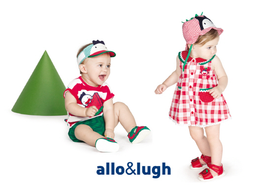이중 알로앤루 '수박 카라 원피스'는 여름을 상징하는 과일 '수박'을 모티브로 한 아이템으로, 보기만 해도 청량감이 느껴지는 과감한 원색 배색과 수박 캐릭터가 눈길을 끈다. 귀여운 여아에게 안성맞춤 아이템이다. 남아에게는 '수박 포인트 상하복'을 추천한다. 수박을 먹는 모습의 위트 있는 알로 캐릭터와 수박 줄무늬 패턴을 연상시키는 하의가 유쾌한 느낌을 자아낸다.