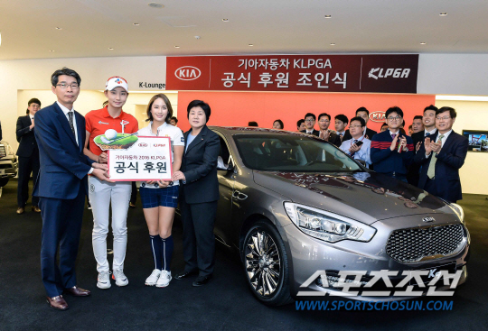 기아자동차㈜는 15일(화) 기아차 압구정 사옥에서 권혁호 기아자동차 영업지원사업부장, 강춘자 한국여자프로골프협회 수석부회장, 김민선·박결 프로골퍼 등 관계자 50여명이 참석한 가운데 '기아자동차 2016 KLPGA 공식 후원' 조인식을 가졌다.