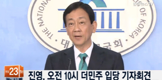 새누리당 공천배제 후 탈당한 3선의 진영 의원이 더불어민주당에 합류했다.