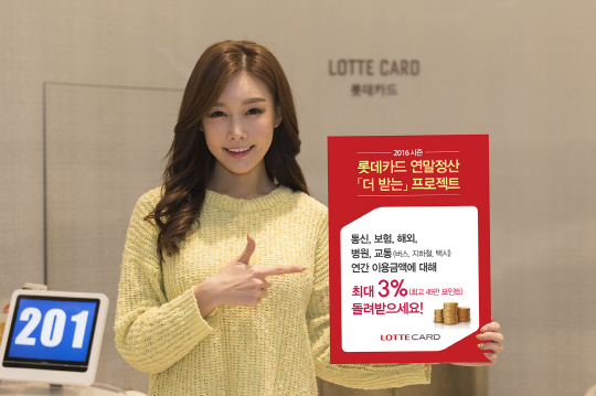 롯데카드 관계자는 "롯데카드를 1년동안 꾸준히 사랑해 주신 회원들께 연말정산 이벤트를 통해서 13월의 보너스를 받는 즐거움을 선사할 것" 이라고 말했다.